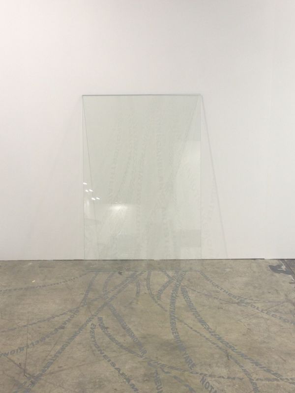 TSANG KINWAH, Jenny just turns her back on me when I’m lost in… Art Basel Hong Kong Kabul Nicosia Phnom Penh Ulan Bator___,2013,Laminated glass&vinyl on floor,Glass h150 x w100 cm,h1000 x w1000 cm