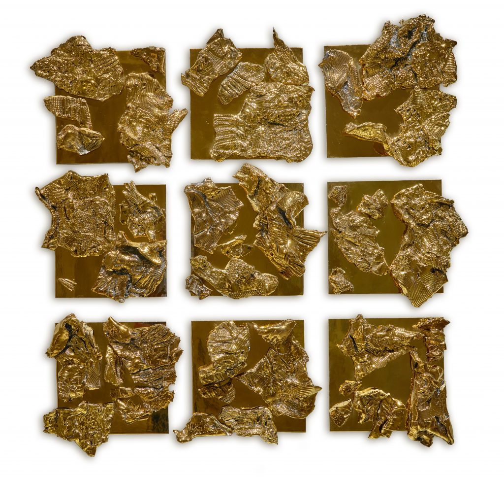 在過去的兩年中,德魯旅居於中國,沈浸在中國文化之中,並因而創作了此系列富有深度並且緊扣當地的全新作品。延伸藝術家本身對非⻄方哲理的興趣,藝術家多樣化的主觀性呈現在此系列的全新雕塑作品集,特別是他首次結合鋸齒狀的鍍金瓷器碎片,創作出更具有地質性的作品結構,宛若映射出一種精神上及物質上的全新深度。