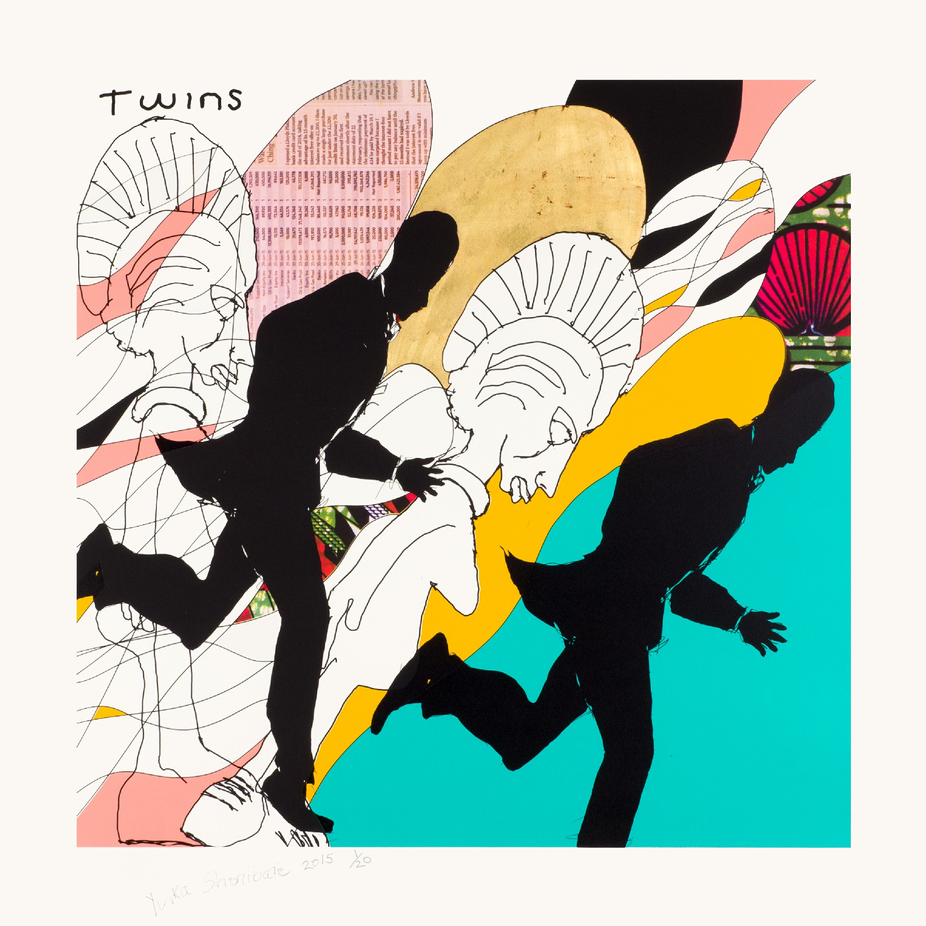 因卡 • 修尼巴爾 MBE b. 1962 雙胞胎 I, 2015 四色絲網印刷、金箔、純棉藝術紙(310 磅) 100 x 100 cm (39 3/8 x 39 3/8 in.)