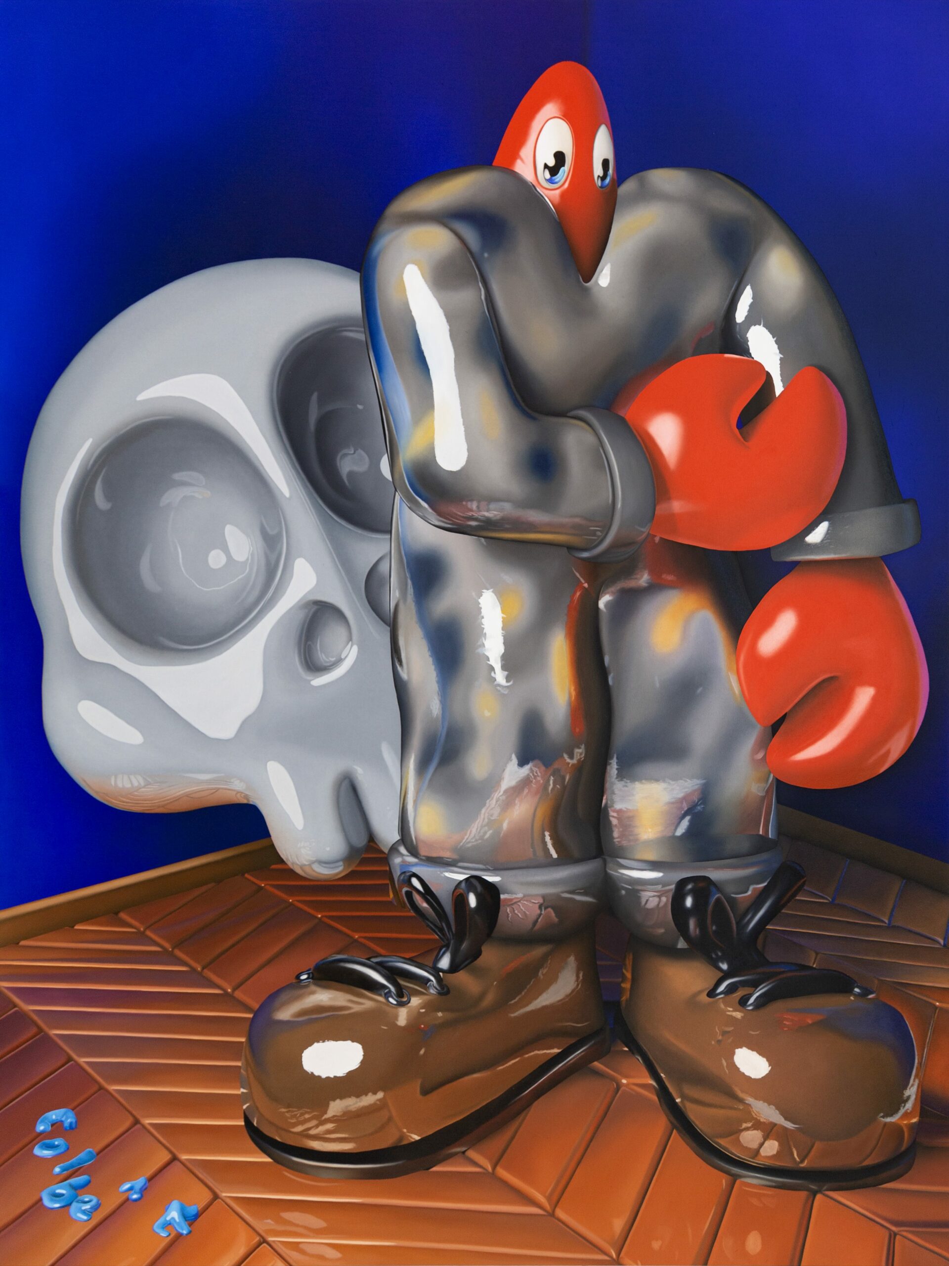 菲利普∙考爾伯特 b. 1979, 房間裡的自畫像 2022 (藍), 2022, 布面油畫, 200 x 150 x 4.5 cm (78 3/4 x 59 x 1 3/4 in.)