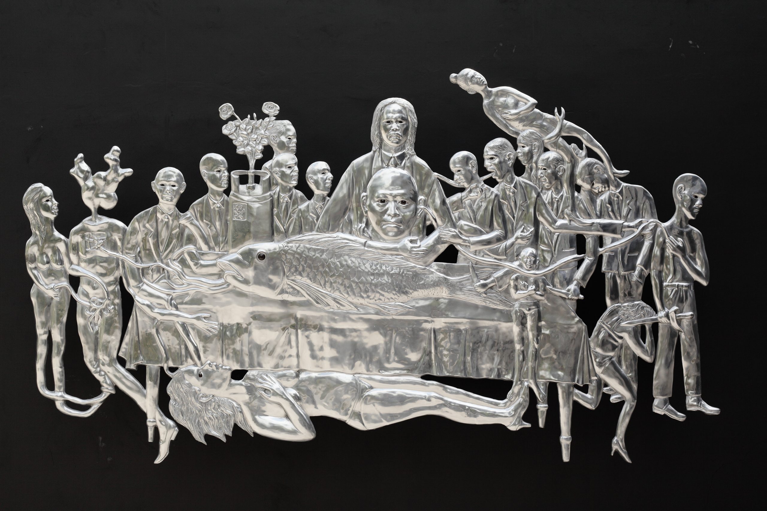 Entang Wiharso 恩唐·維哈爾索 b.1967, 無處藏身, 2012, 鋁、樹脂、顏料、線, 130 x 220 cm; 51 x 86 in.