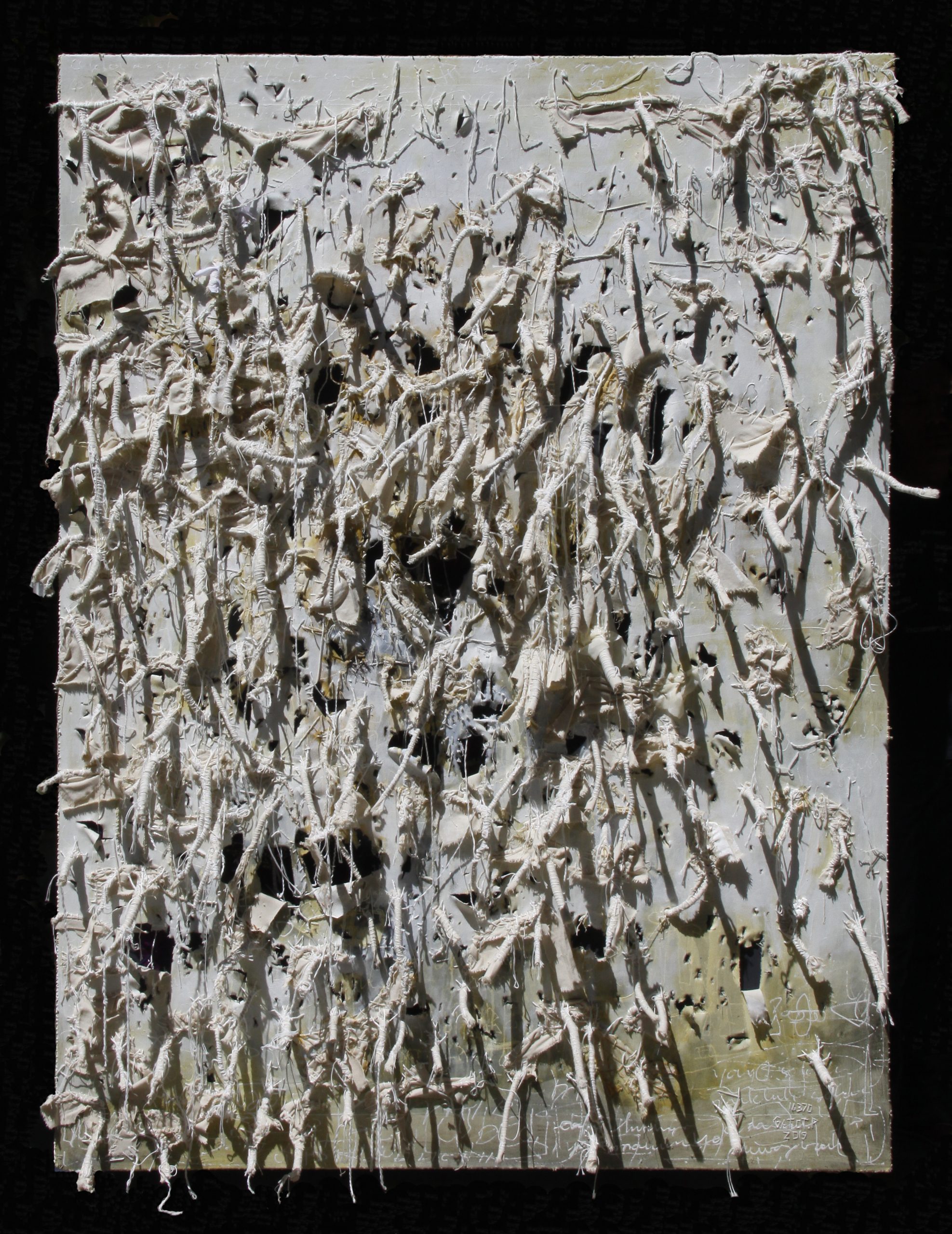 Gatot Pujiarto_2019_Dibawah Nol Derajat Celcius – Below Zero Degrees Celcius_canvas, acrylic, textile, thread_200 x 150 cm
