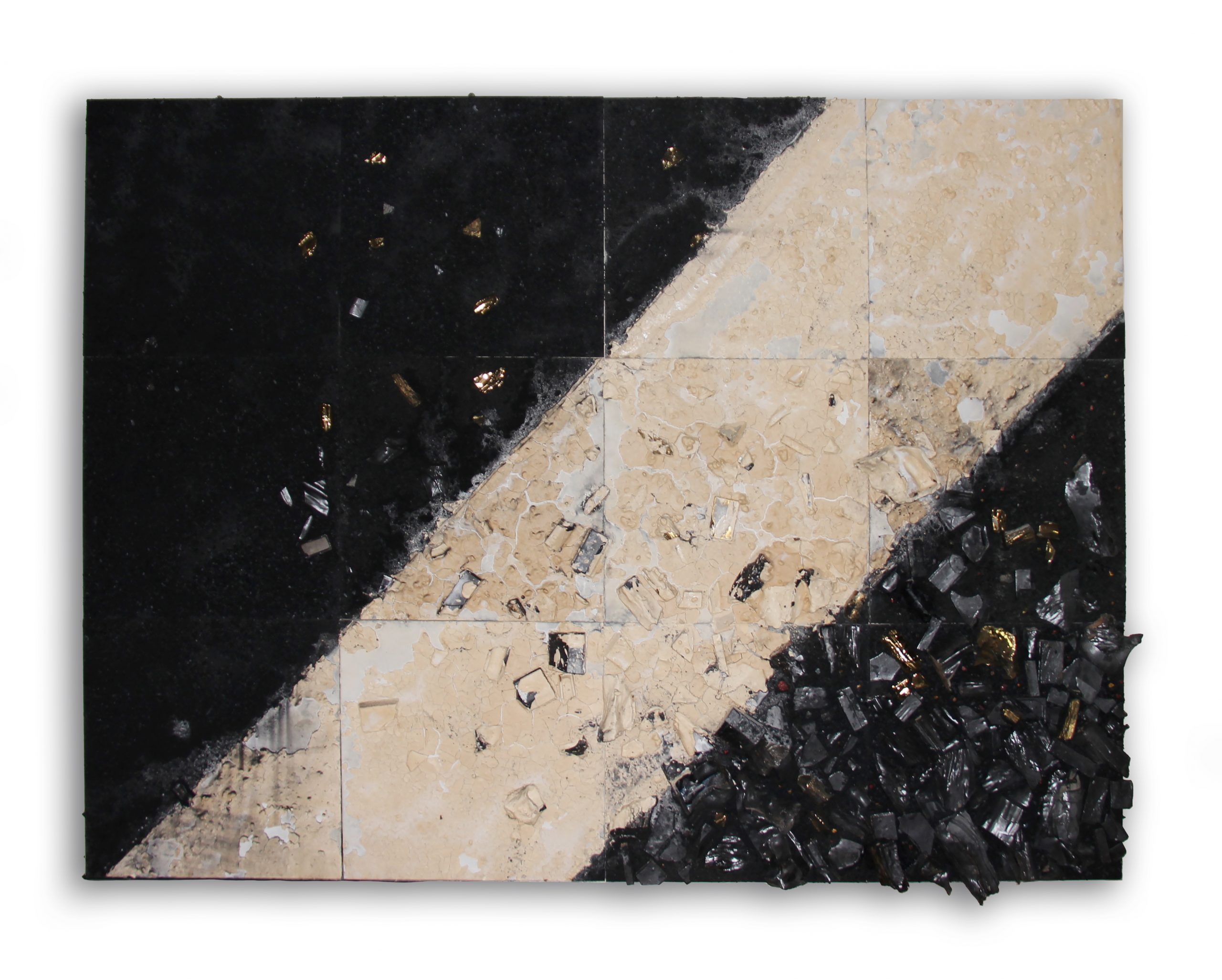 Leonardo Drew b.1961 Number 44C, 2018 Porcelain and charcoal, 182.9 x 243.8 x 5.1 cm