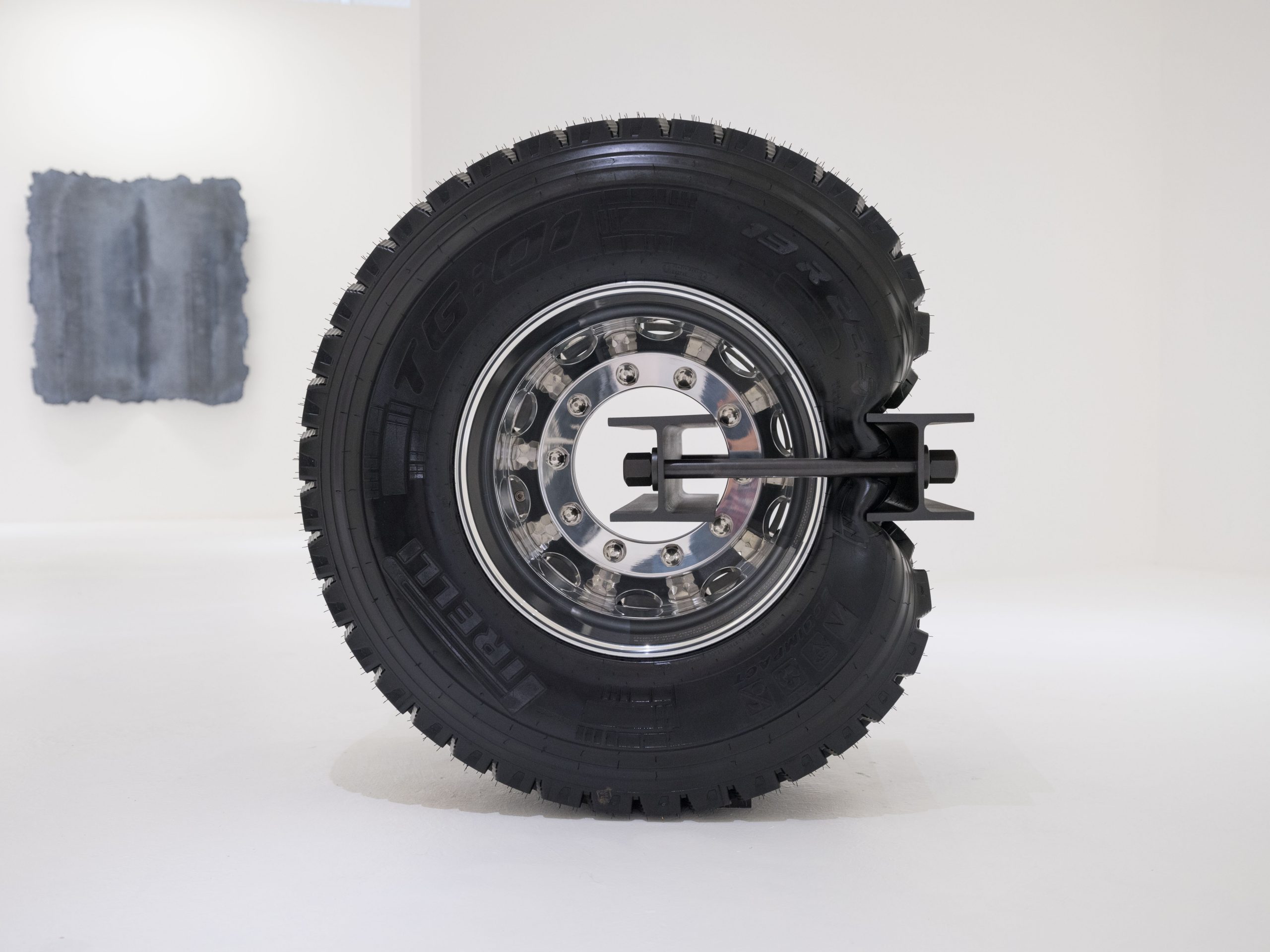 Arcangelo Sassolino b.1967, Marcus 2018, Pirelli tires and steel I-beam, 112 x 107 x 77 cm