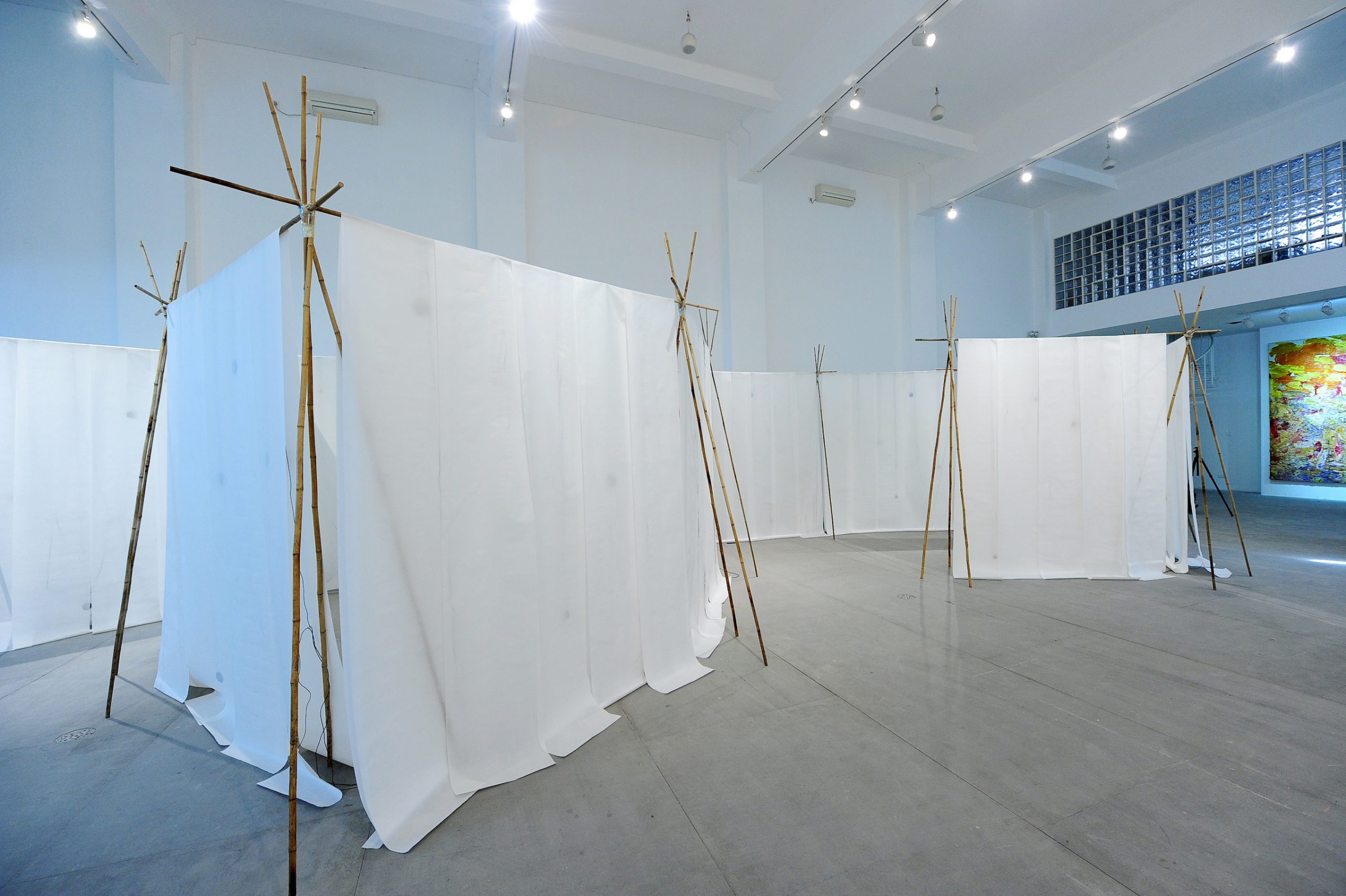 Qin Yufen 秦玉芬 宣纸声 Sound of paper,2010 Sound Installation, 声响装置, Bamboo, Xuan paper, loudspeakers, 4- channel digital sound etc 竹,宣纸,扬声器,四 声道数码声响等